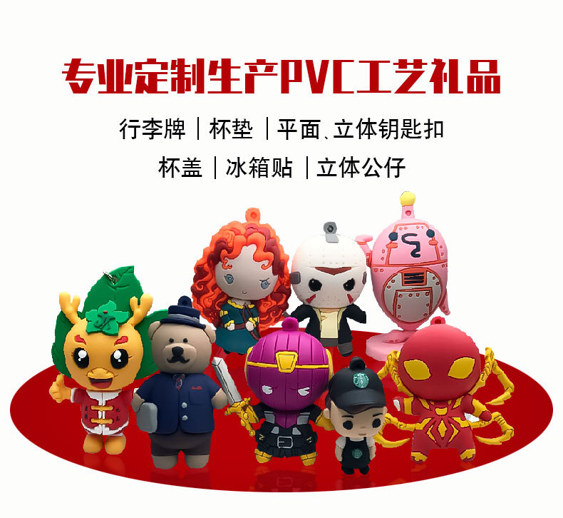 厂家定制滴胶公仔钥匙扣 卡通动漫文创礼品可印LOGO立体pvc摆件